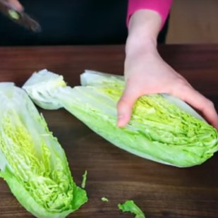 The trick is: cutting out the core, then cutting it into a grid shape (using a knife. Tearing it with your hands takes much longer). Watch the full video here.