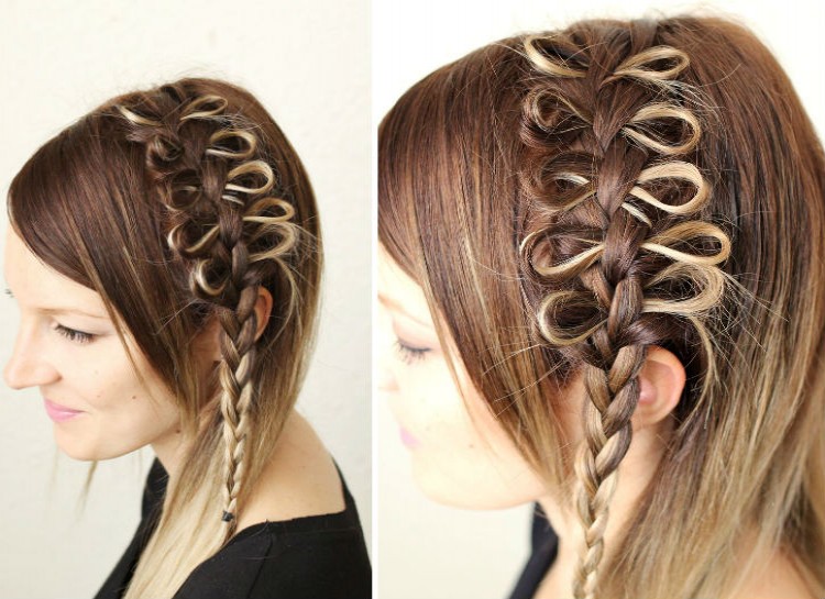 This pretty twist on a classic braid is sure to get noticed. Simply make a french braid anywhere you like, and spritz the a section of hair just behind the braid with water. Stick a hairpin through a section of the braid, and then create a loop with a smll section of hair and put it through the same hairpin. Repeat this process as often as you like.