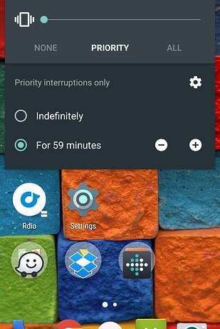 Android 5.0 Lollipop introduced “Priority mode,” a new feature that allows interruptions only from contacts you designate. Turn on Priority mode by pressing any volume button. Tap the settings gear to customize which calls and texts will go through.