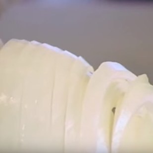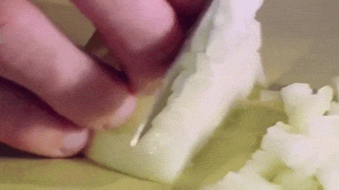 The trick is: Slicing it into a little grid with a sharp knife. It still takes practice, but this method is ~super~ easy once you get the hang of it. Watch the full video here.