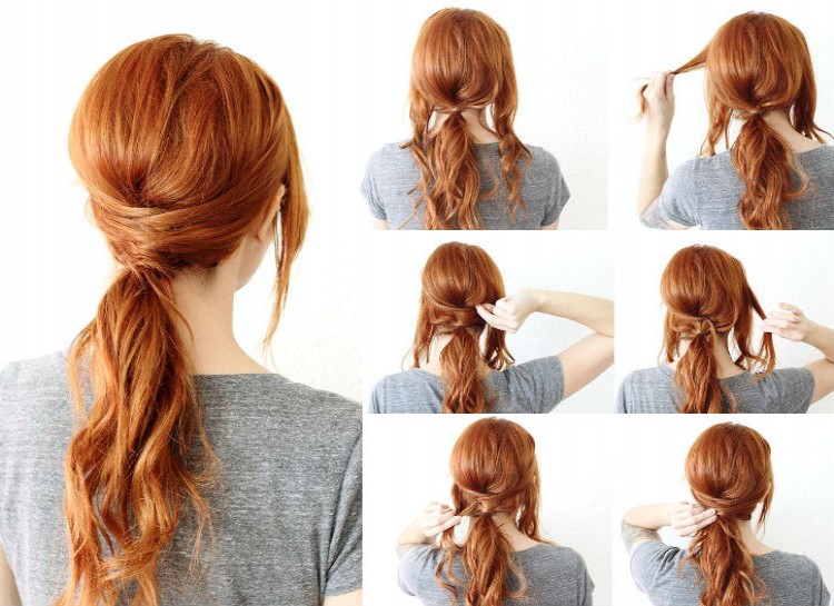 Add some uniqueness to a basic ponytail in just a few easy steps! Make your ponytail like normal, except leave out a section on both the right and left sides. Alternate taking the top strand of hair from each side section and pinning them back to the opposite side of your ponytail