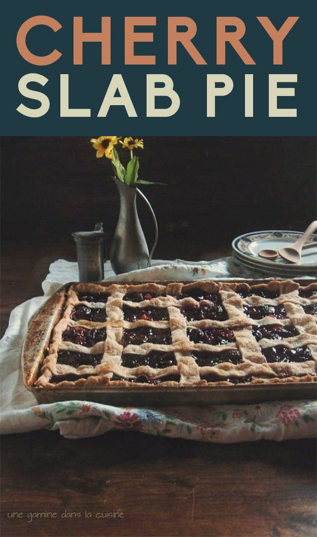 Slab pies are made in a rimmed baking sheet (also called a jelly roll pan) so they are slightly shallower than standard pies and can feed more people.
