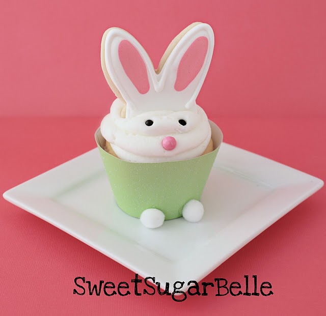 Once you make the little cookies, all you have to do is stick them onto iced cupcakes. Much easier than most cupcake decorating. Directions here.