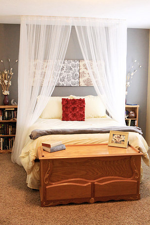 14. DIY a cozy canopy by hanging fabric from the ceiling.