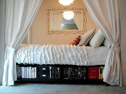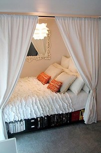 16. If your bed is in a nook or very small room, you can turn it into a ship-shape hideaway with some curtains.