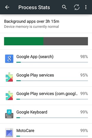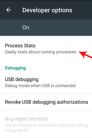 2. Go to Settings > Developer Options > Process Stats. There, you’ll find a ranking of which apps are using the most memory (RAM). If your phone is being *super* s-l-o-w, quit the top shown here.