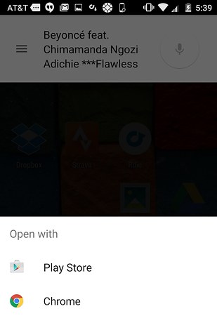 Open Google Search, tap the microphone and ask “What’s this song?” Your phone will begin analyzing the audio and show you artist, title, as well as album info.