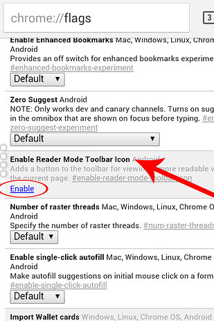 This button makes it easier to read articles on a smaller screen. In Chrome, type “Chrome://flags” in the URL bar. Then in the main Menu, select “Find in page” and type “Reader Mode Toolbar icon.” Once you find it, enable the feature.